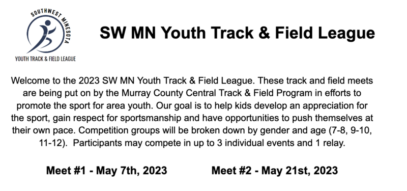 SWMN Track & Field May 7 & May 21: H-BC Students Age 7-12 are invited to participate in 2023 SW MN Youth Track & Field League.