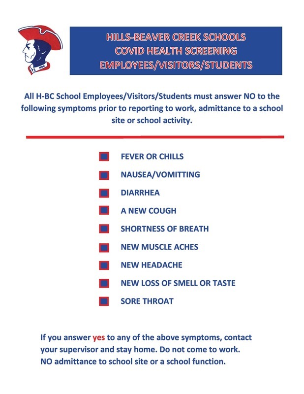 Reminder: Make sure to screen your child everyday, prior to coming to school! Your assistance is greatly appreciated!
