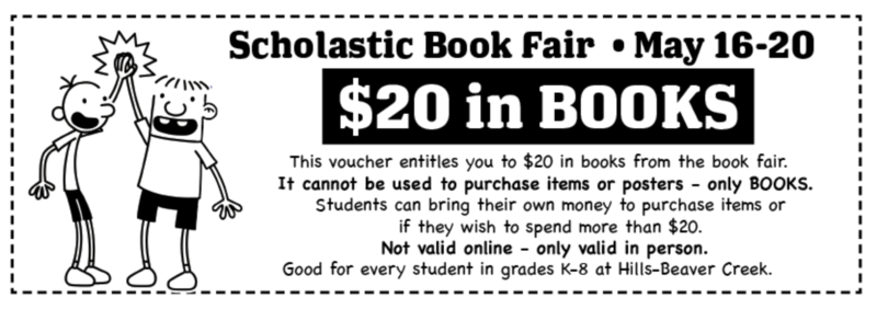 Scholastic Book Fair: BIG NEWS! In an effort to promote summer reading, each H-BC K-8 Student will receive $20 to spend on books at the book fair! These funds have been made possible by a grant. Watch for more information to come!
